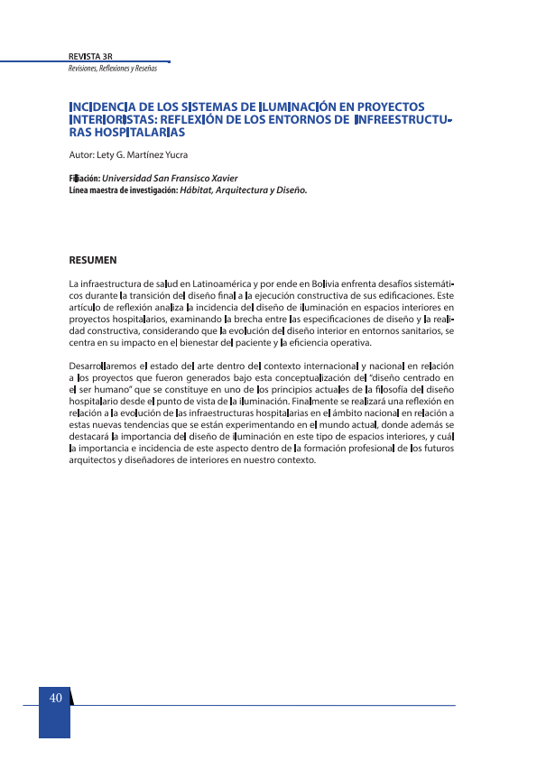 - Incidencias de los sistemas de iluminación en proyectos interioristas: Reflexión de los entornos de infraestructuras hospitalarias
