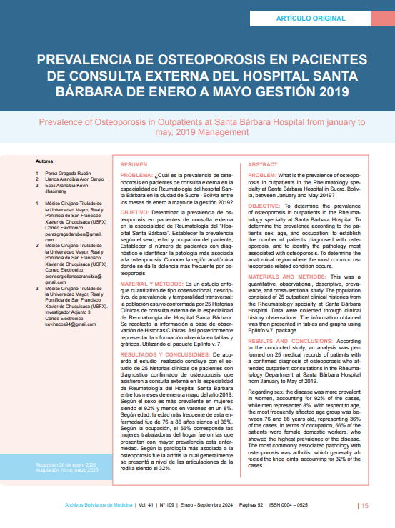 Vol. 41 Núm. 109 (2024): ARCHIVOS BOLIVIANOS DE MEDICINA