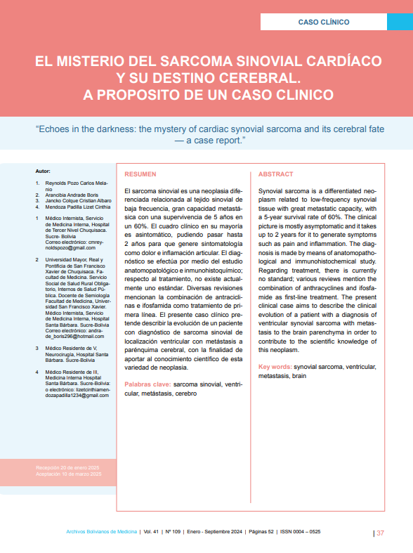 - EL MISTERIO DEL SARCOMA SINOVIAL CARDÍACO Y SU DESTINO CEREBRAL. A PROPOSITO DE UN CASO CLINICO