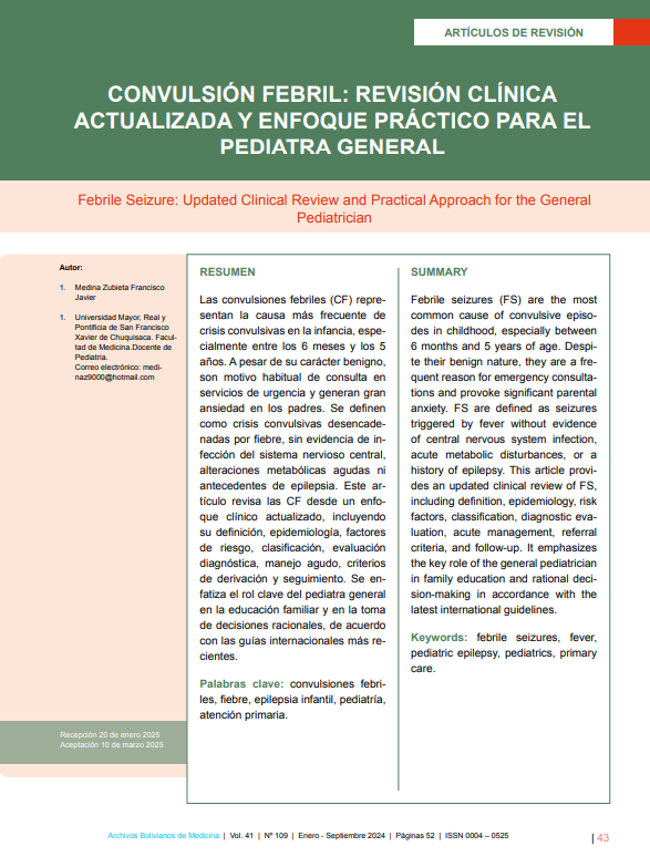 - CONVULSIÓN FEBRIL: REVISIÓN CLÍNICA ACTUALIZADA Y ENFOQUE PRÁCTICO PARA EL PEDIATRA GENERAL