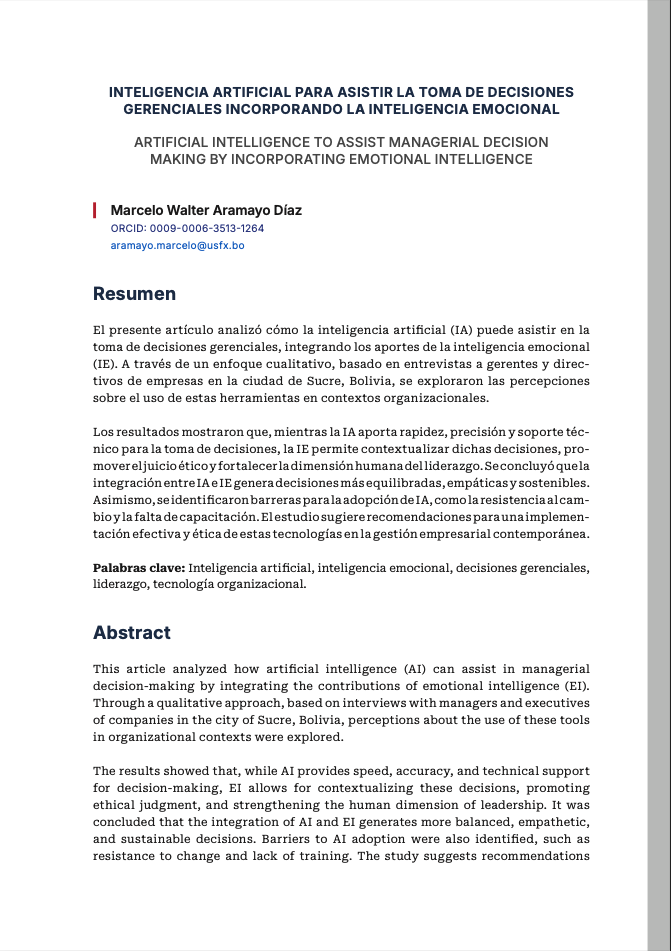 - INTELIGENCIA ARTIFICIAL PARA ASISTIR LA TOMA DE DECISIONES GERENCIALES INCORPORANDO LA INTELIGENCIA EMOCIONAL
