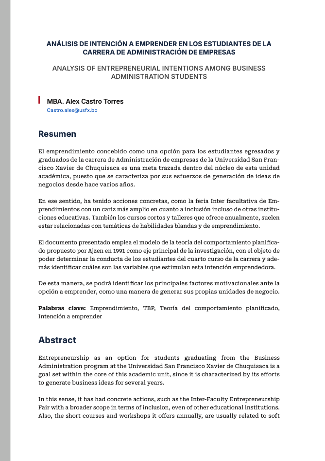 - ANÁLISIS DE INTENCIÓN A EMPRENDER EN LOS ESTUDIANTES DE LA CARRERA DE ADMINISTRACIÓN DE EMPRESAS