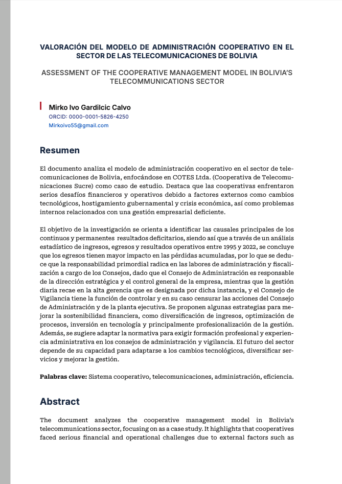 - VALORACIÓN DEL MODELO DE ADMINISTRACIÓN COOPERATIVO EN EL SECTOR DE LAS TELECOMUNICACIONES DE BOLIVIA