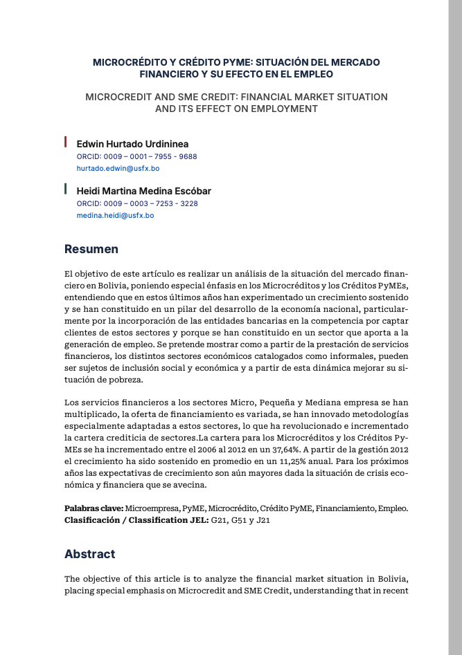 - MICROCRÉDITO Y CRÉDITO PYME: SITUACIÓN DEL MERCADO FINANCIERO Y SU EFECTO EN EL EMPLEO