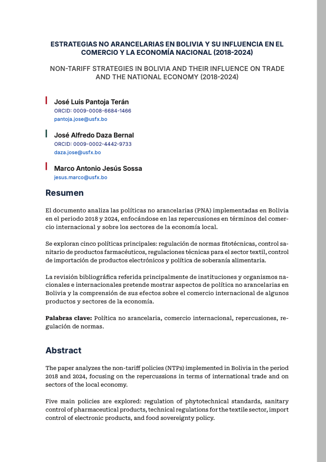 - ESTRATEGIAS NO ARANCELARIAS EN BOLIVIA Y SU INFLUENCIA EN EL COMERCIO Y LA ECONOMÍA NACIONAL (2018-2024)