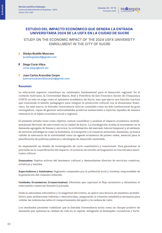 - ESTUDIO DEL IMPACTO ECONÓMICO QUE GENERA LA ENTRADA UNIVERSITARIA 2024 DE LA USFX EN LA CIUDAD DE SUCRE