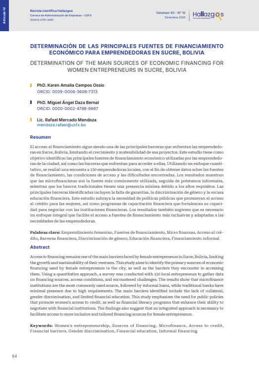 - DETERMINACIÓN DE LAS PRINCIPALES FUENTES DE FINANCIAMIENTO ECONÓMICO PARA EMPRENDEDORAS EN SUCRE, BOLIVIA