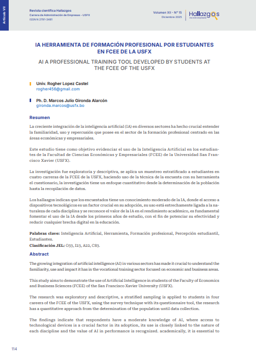 - IA HERRAMIENTA DE FORMACIÓN PROFESIONAL POR ESTUDIANTES EN FCEE DE LA USFX