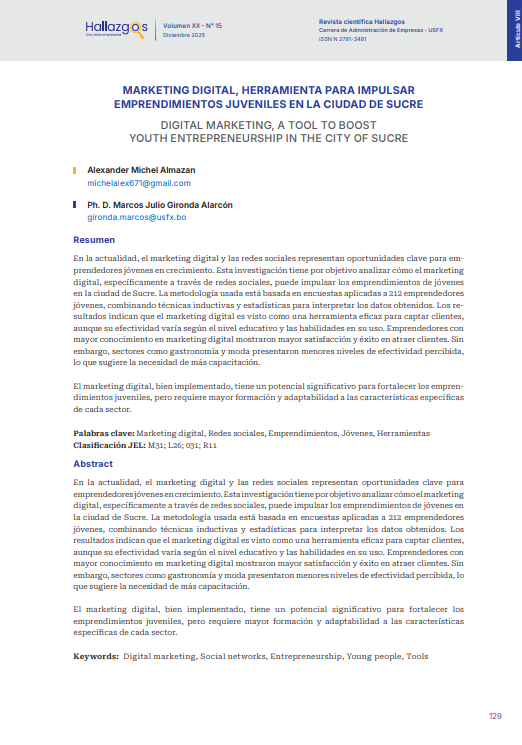 - MARKETING DIGITAL, HERRAMIENTA PARA IMPULSAR EMPRENDIMIENTOS JUVENILES EN LA CIUDAD DE SUCRE