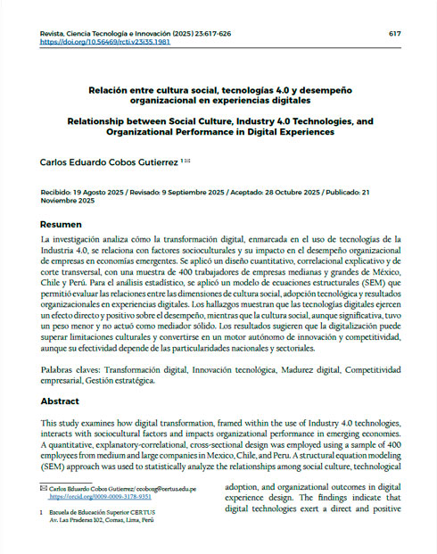 Vol. 23 Núm. 35 (2025): REVISTA CIENCIA, TECNOLOGÍA E INNOVACIÓN