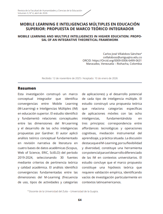 - MOBILE LEARNING E INTELIGENCIAS MÚLTIPLES EN EDUCACIÓN SUPERIOR: PROPUESTA DE MARCO TEÓRICO INTEGRADOR
